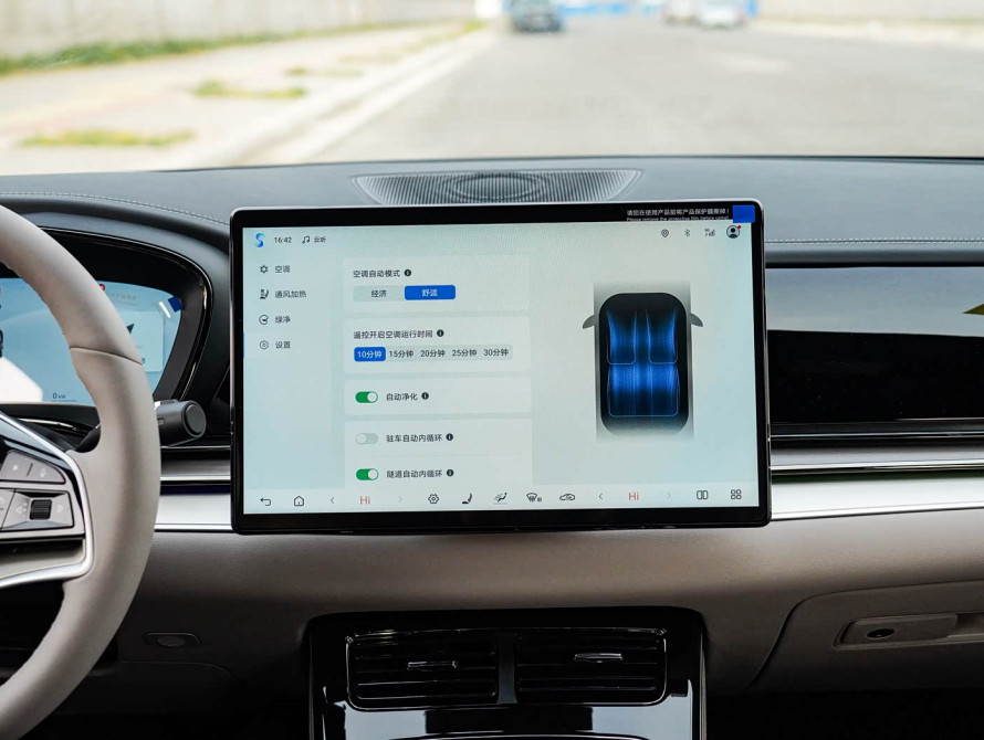 Салон BYD Han DM-i — это высокотехнологичное пространство для водителя и пассажиров: